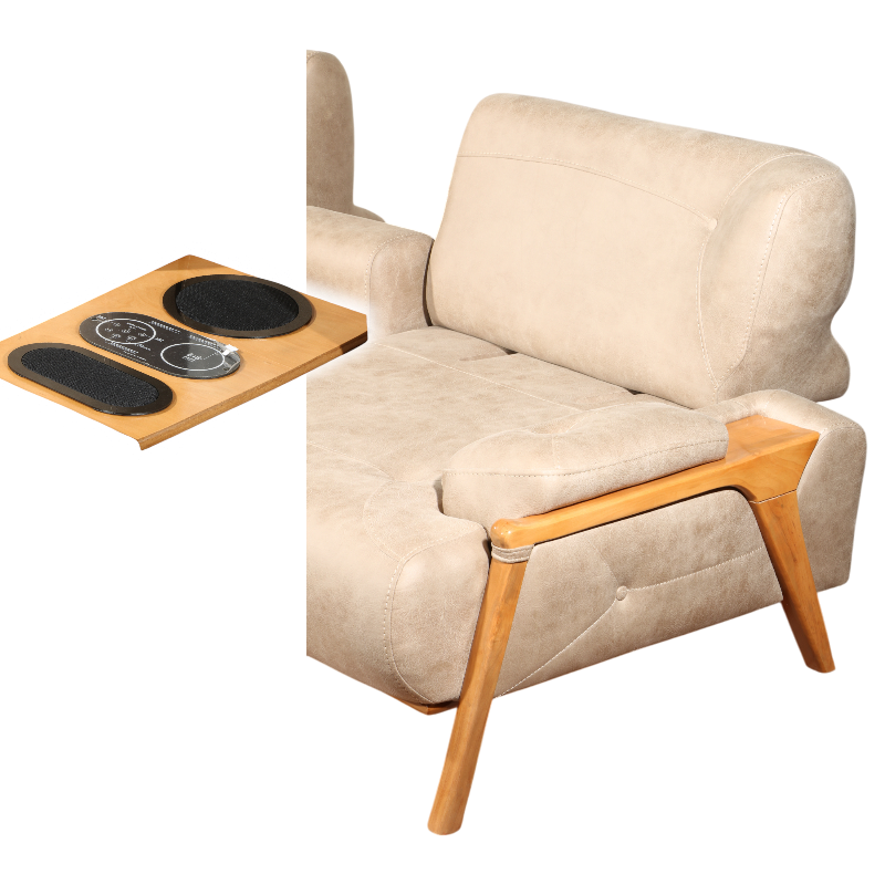 – شارژر موبایل وایرلس داخلی با قابلیت شارژ سریع انواع گوشیهای هوشمند، تعبیهشده در قسمتهای مختلف کاناپه برای دسترسی آسان