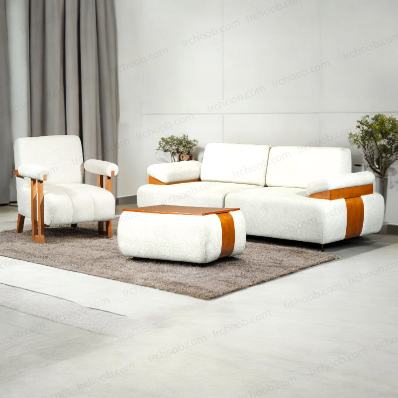 در کنار کاناپههای پازلی، مدل کنزو دارای مبل تکنفره چوبی با طراحی خاص و کیفیت بالاست. این عنصر مستقل، نهتنها از نظر بصری ترکیب مبلمان را کامل میکند، بلکه بهعنوان یک نقطهی تمرکز در دکوراسیون نیز عمل میکند. طراحی این مبل با خطوط ساده و متریال مرغوب، حس اصالت و ظرافت را به فضای نشیمن شما اضافه میکند.